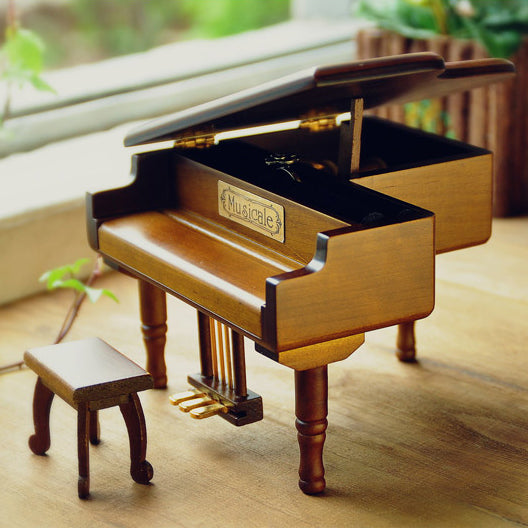 Mini Wooden Piano Music Box with Bench – Unique Gift for Music Lovers, Birthday, Christmas, Home Decor